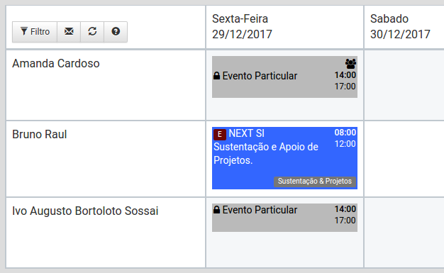 Programe e consulte os eventos da agenda de colaboradores e ativos da empresa.